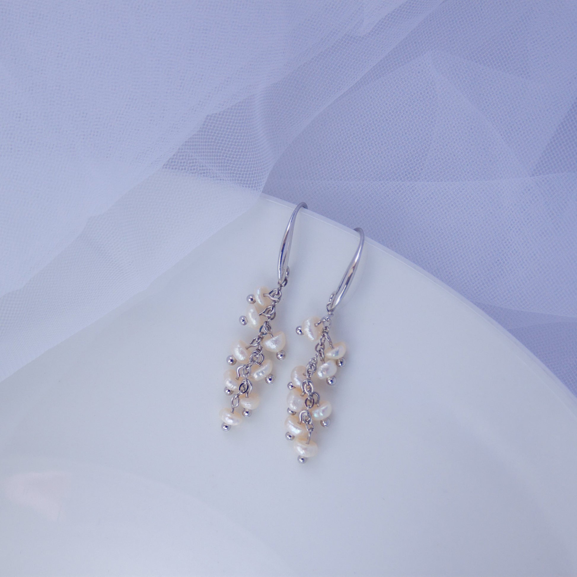 Orecchini a gancio con perle a grappolo – Perle d'acqua dolce pendenti in argento sofisticato