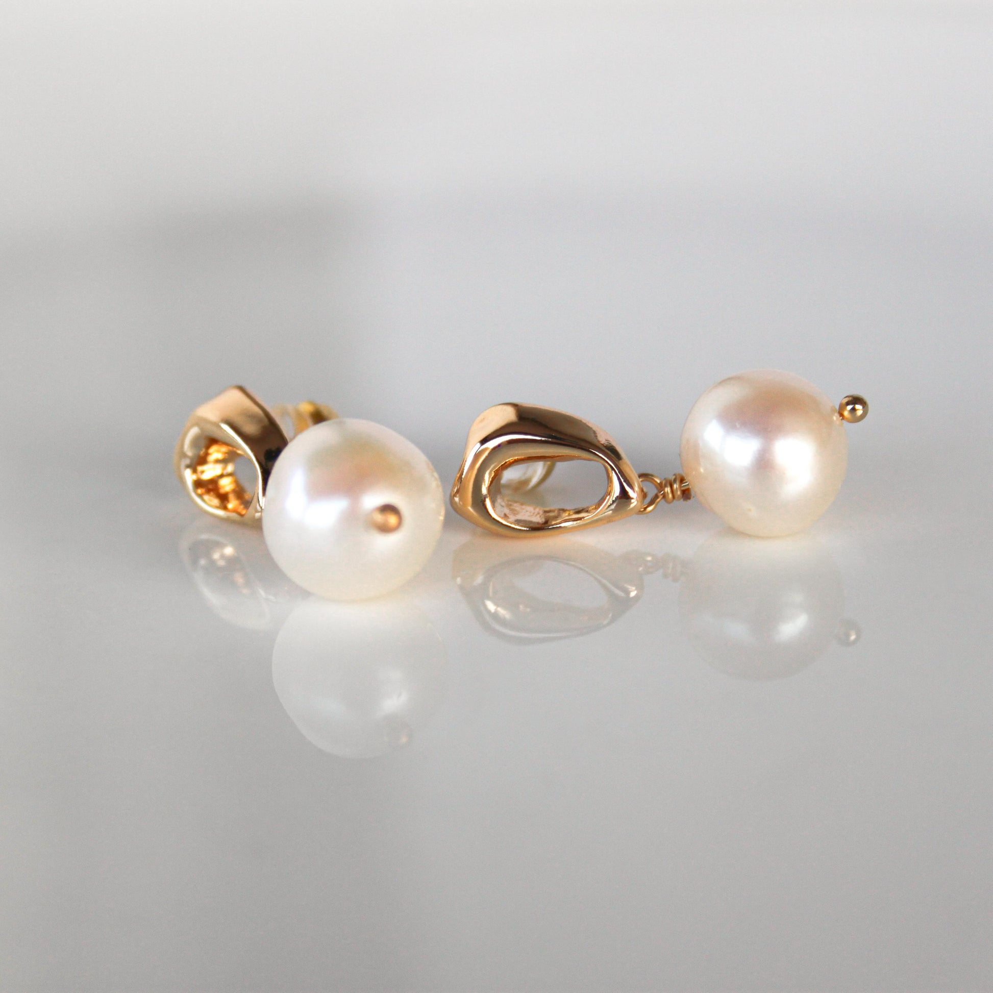 These earrings highlight the gentle glow of natural freshwater pearls in an elegant drop shape. Each pair is crafted with gold-plated details and carefully matched pearls that catch the light beautifully. They’re perfect for brides, bridesmaids, or anyone who loves refined, feminine jewelry that feels effortless. Ideal for weddings, dinners, or adding quiet sophistication to an everyday look.
